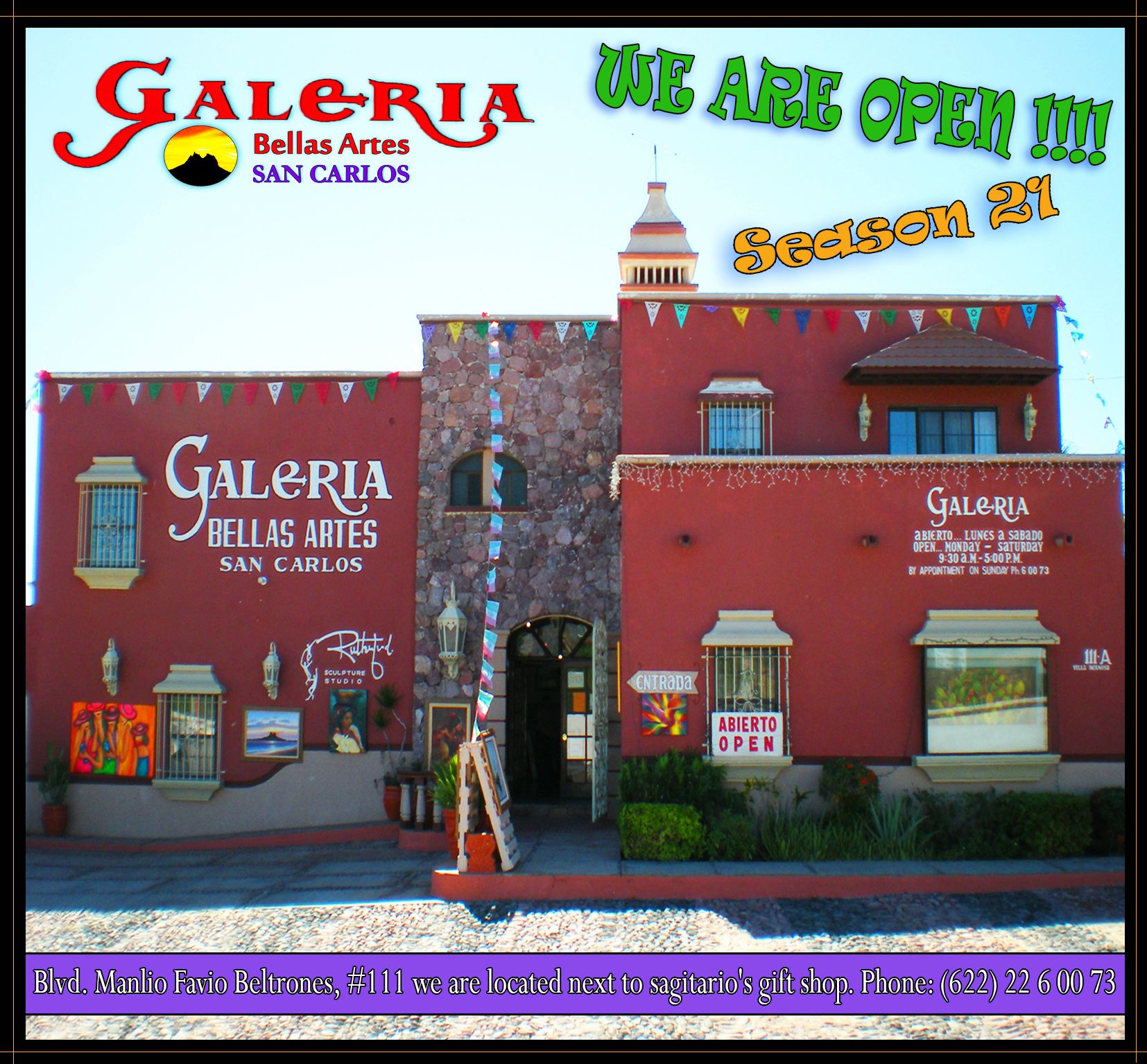 Galeria Bellas Artes has a very interesting history. Its owner and San Carlos resident for the past 32 years, Pilar Rutherford, and her late husband Burke, have always been lovers of art. In fact, Burke was a sculptor as well as being an architect. For many years, he would bring artists from the US and arrange art exhibitions and shows at the Posada and the San Carlos Country Club. The tradition of having art in San Carlos was so well supported that in the mid 1980’s, the Rutherford’s showed art work in their own home in the Caracol.
