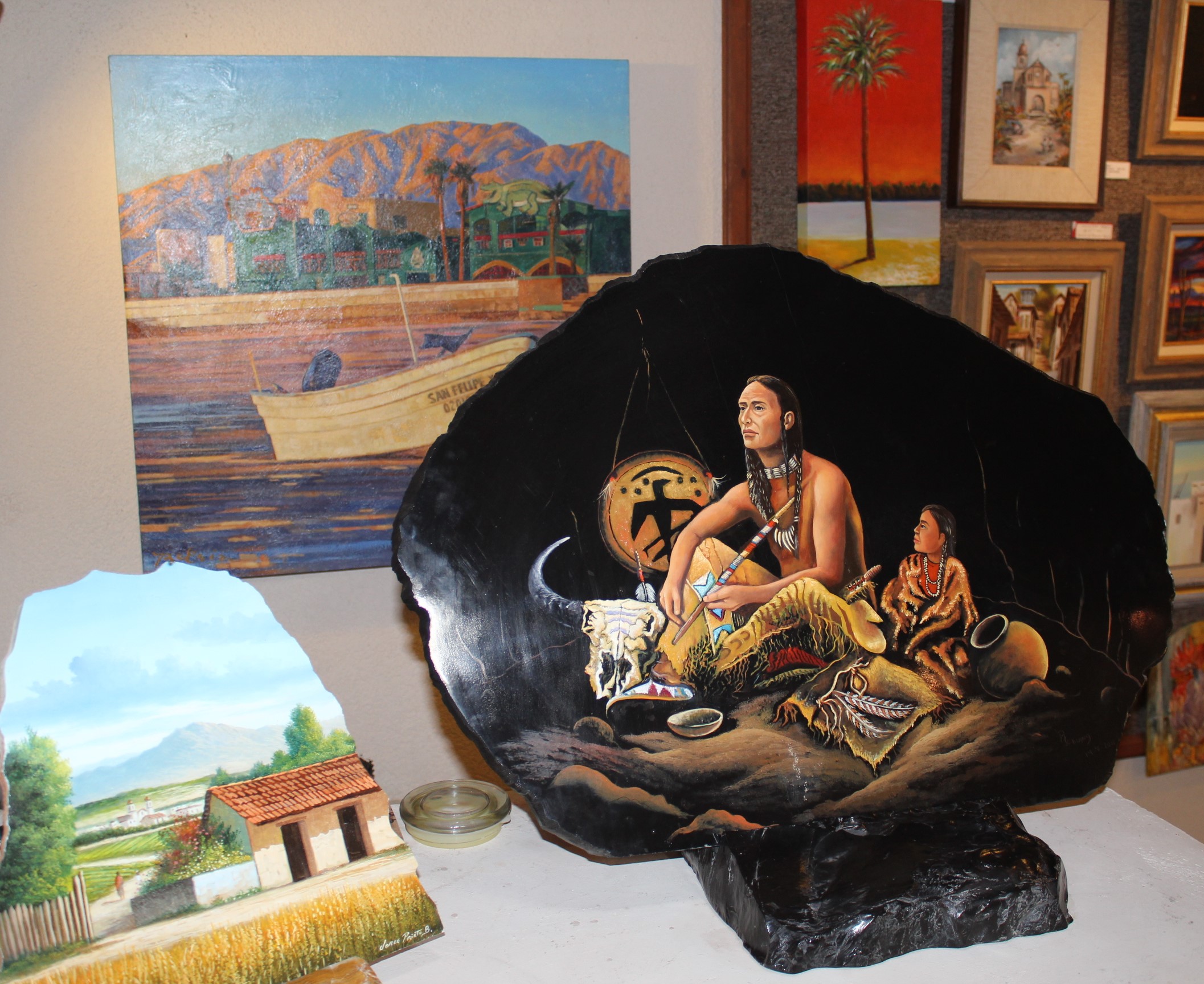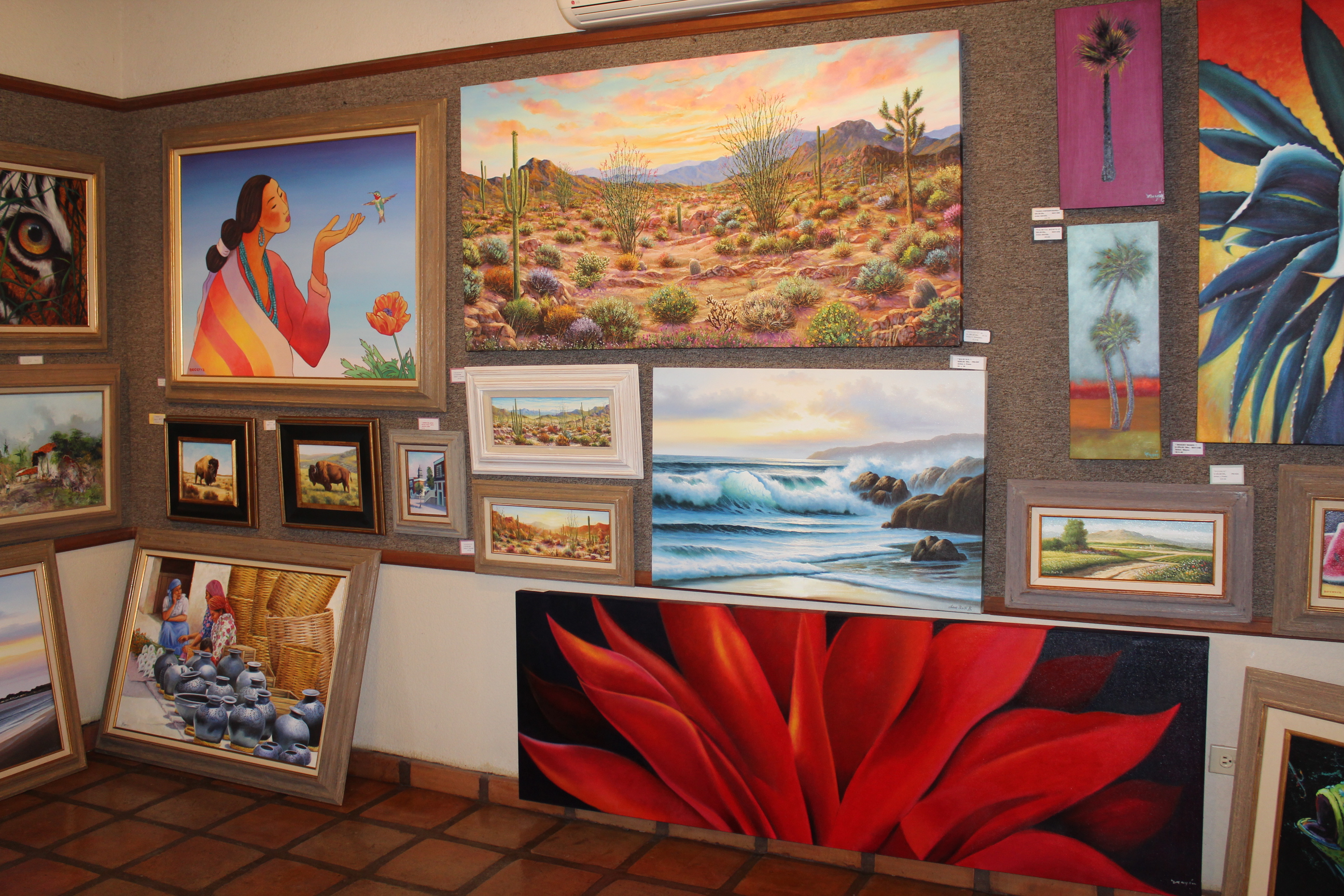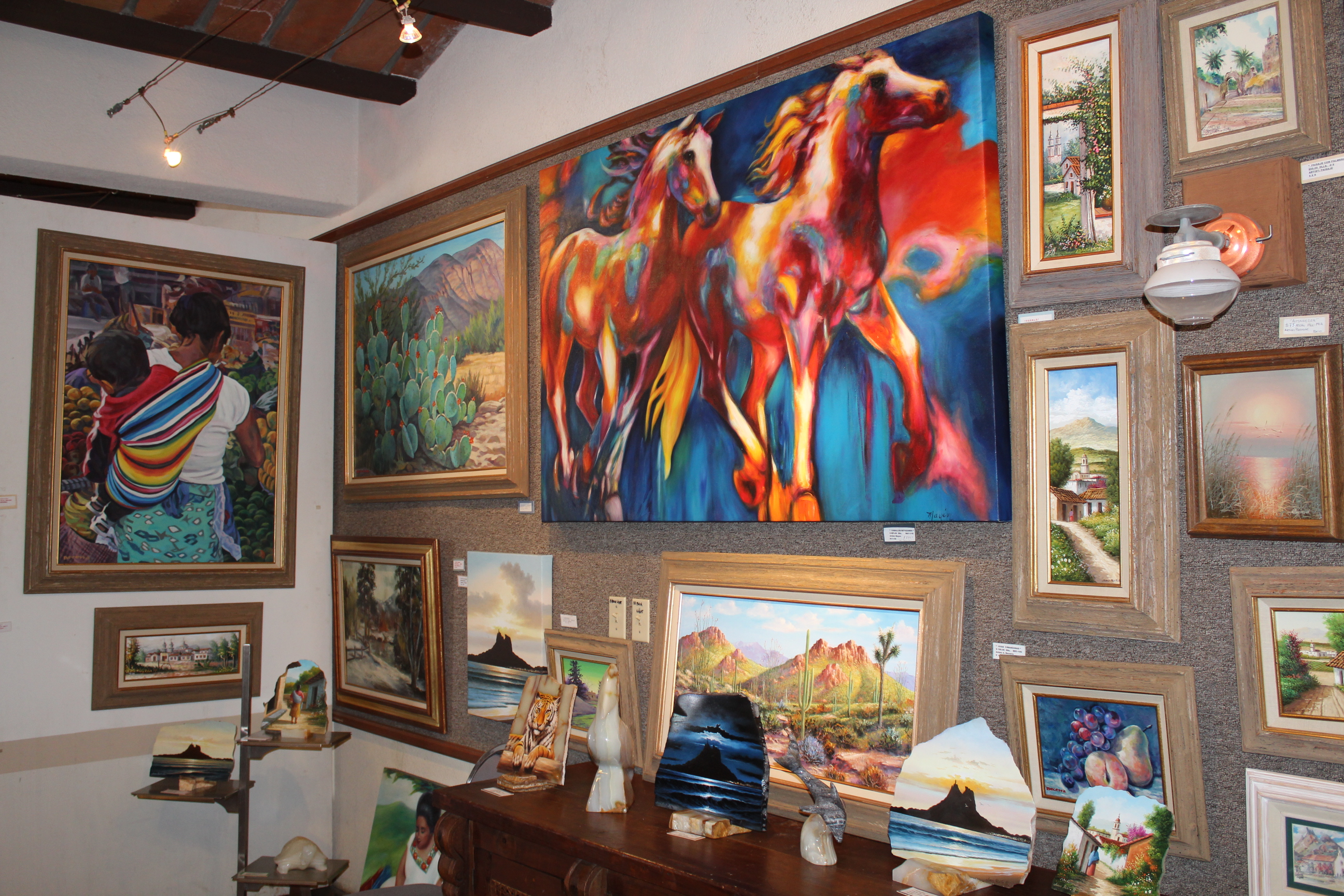 well. Here you will find amazing original paintings of the colors, the textures, the sunsets, the people, the crashing waves, the architecture and the traditions of Mexico. Pilar is always available to provide explanations of the artwork, and to tell you about the artists. When I visited, Pilar pointed out several oil paintings by prolific Mexican artist Jorge Prieto and other crafts by Mexican artisans. There are works by Armando Becerra, a popular painter who celebrates his love and dedication to the arts by painting Mexico as it is. Even movie director James Cameron has a Becerra adorning a wall in his private home in California. Other well-known artists include Mayen and Acosta.
