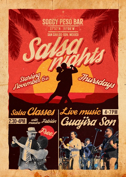 Starting next Thursday, November 6, Soggy Peso will be hosting Salsa Nights including free salsa dance classes, a free salsa & totopos per table, followed by fantastic live salsa music by Guajira Son with Dany Moreno.