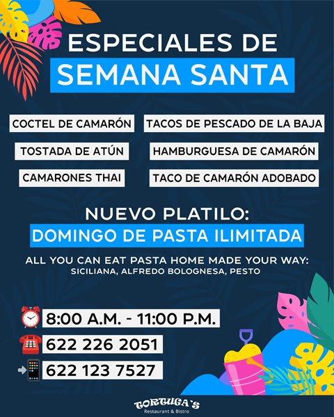 Holy Week Specials at Tortuga’s Restaurant & Bar